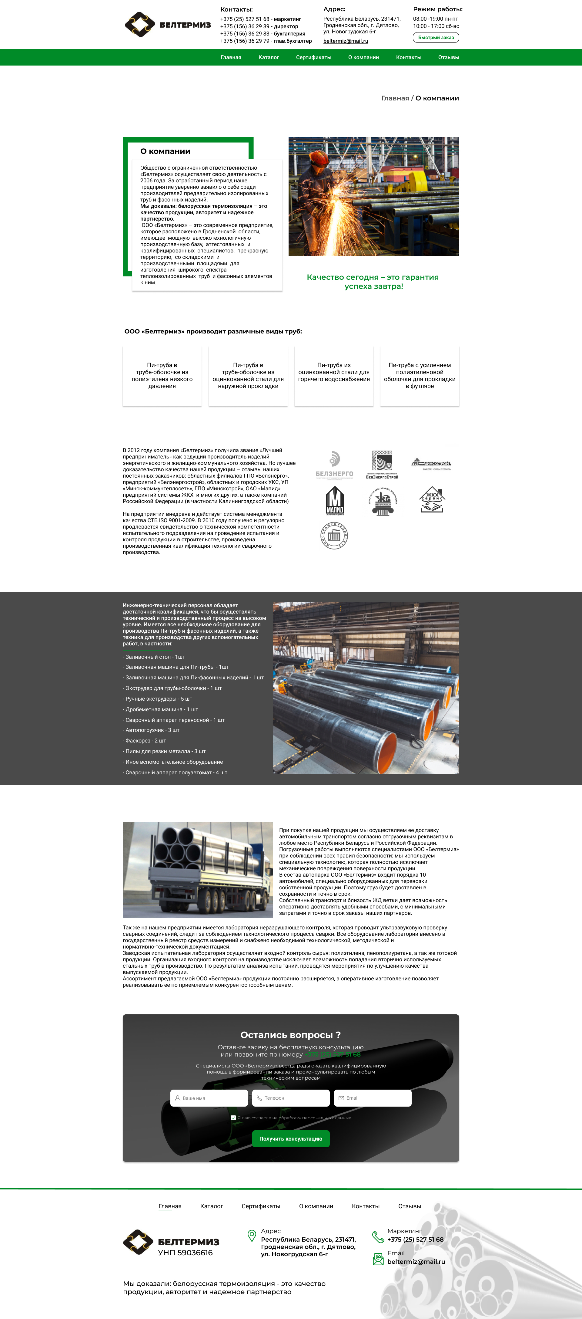 Закажите готовый продающий сайт визитка #141 в Волгограде за 5-7 дня «под ключ»: свёрстан, отрисован и готов к рекламе. Тематика шаблона «Производство ПИ-труб».