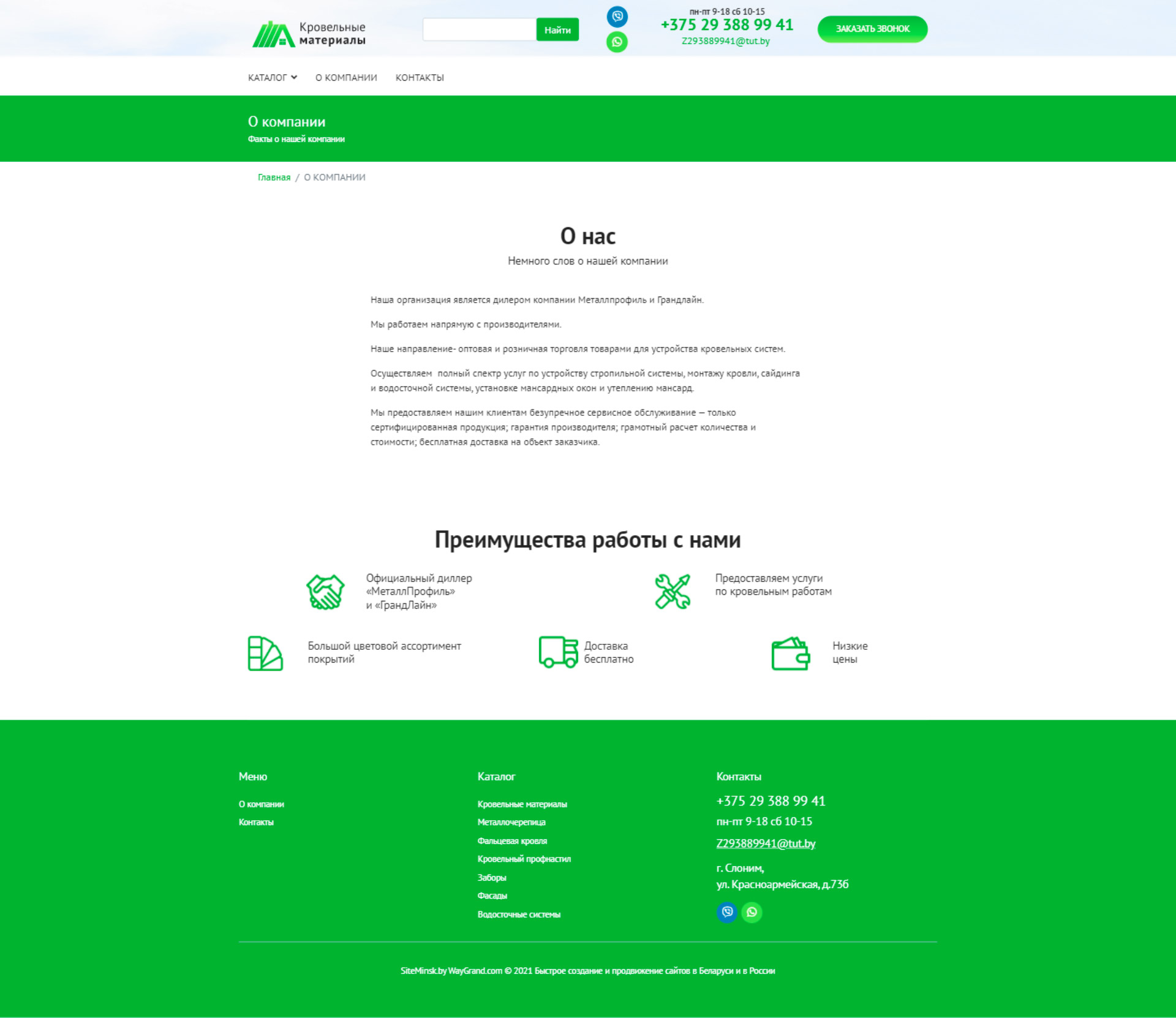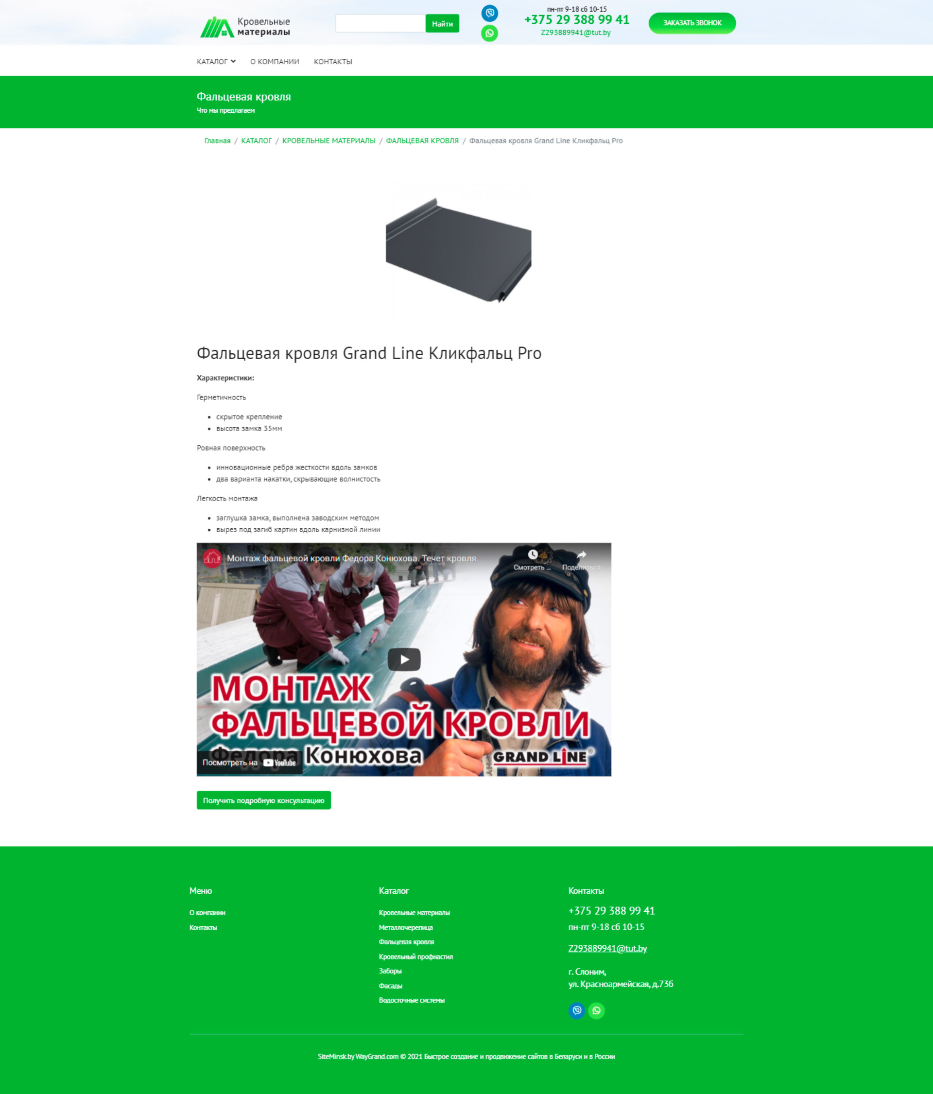 Закажите готовый продающий сайт визитка #324 в Волгограде «под ключ» на waygrand по выгодной цене: свёрстан, отрисован и готов к рекламе. Тематика шаблона «Кровельные материалы».