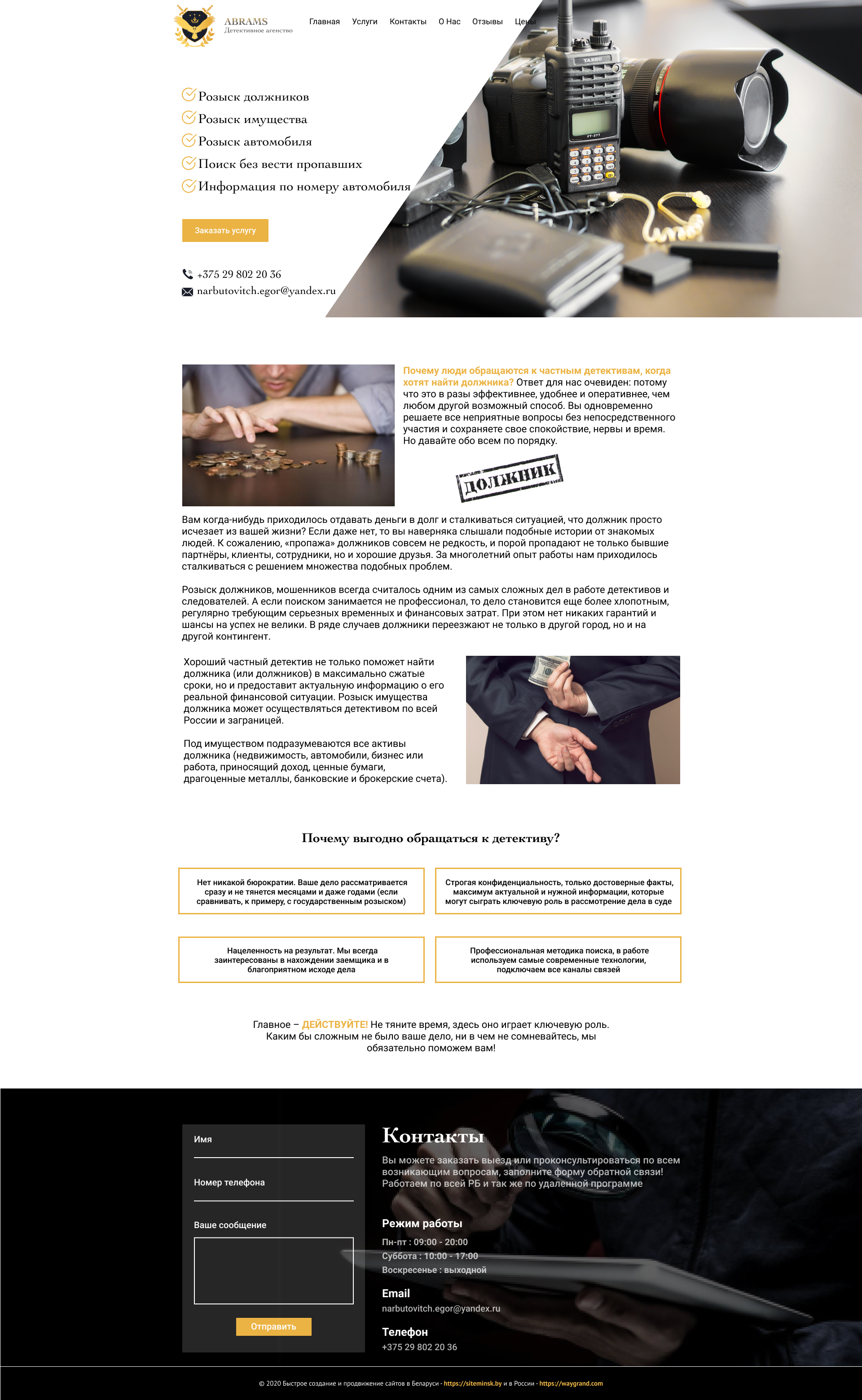 Закажите готовый продающий сайт визитка #239 в Волгограде за 5-7 дня «под ключ»: свёрстан, отрисован и готов к рекламе. Тематика шаблона «Частное детективное агентство».